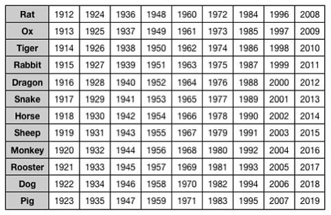 Chinese Zodiac Years Chart Gallery Of Chart 2019