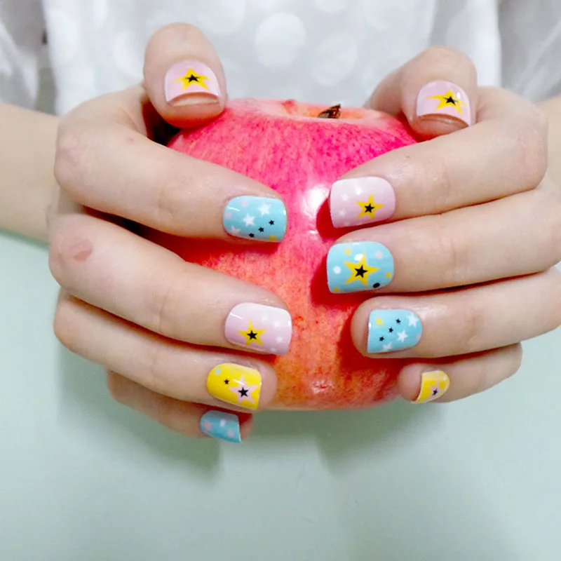 20pcs Wearable Full Cover Press On Nails For Kids Colorful Cute Star Element Patches Fashion False Nails For Children With Glue False Nails Aliexpress