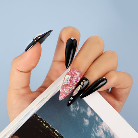 Full Cover Clear Pink Design Long Squoval False Nail Tips Ikatehouse