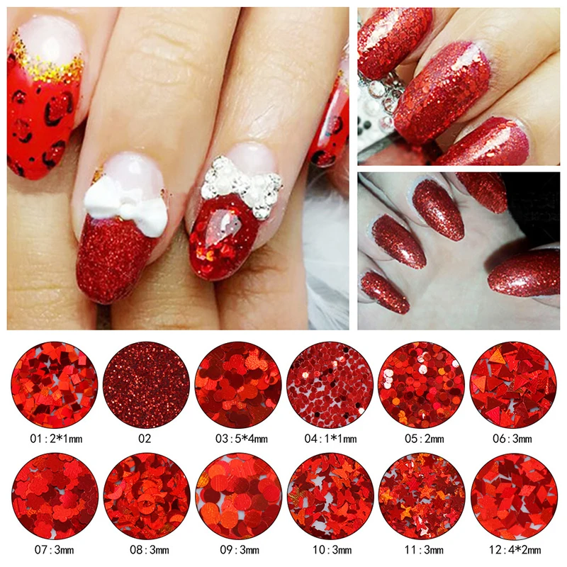 12 Styles Red Nail Glitter Pigment Powder Holographic Dust Manicure Nail Art Glitter Chrome Powder Decorations Nails Dip Powder Nail Dipping Powder Nail Glitternail Art Glitter Aliexpress