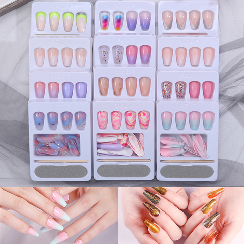 24pcs Set Long False Nails Press On Nails Rainbow Gradient Fake Nails Full Cover Nails Ballet Nail Tips Gliter Artificial Nails False Nails Aliexpress