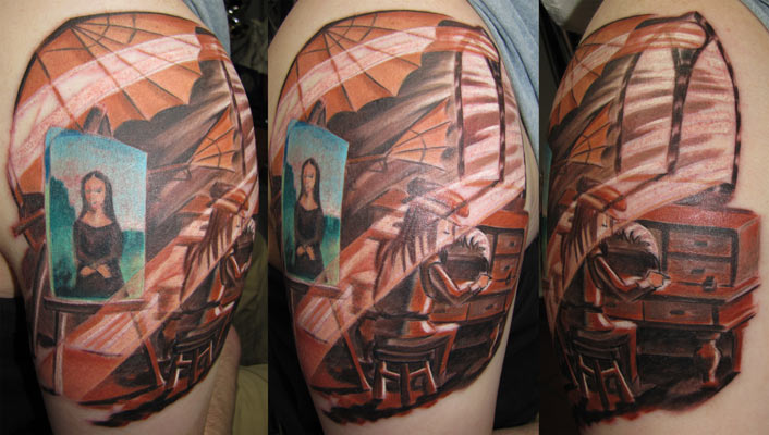 Leonardo da vinci tattoos. Mens chest and sleeve with works form the famous artists Leonardo da Vinci Peter Paul Rubens. Through winning awards at local competitions and constant hard work those goals have been achieved. This painting has found its way into many facets of art including tattoo artwork.